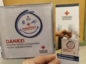 Die Happy2Euro Spendenbox lädt alle Schülerinnen und Schüler der Landesberufsschule Laa/Thaya ein, die Arbeit des Österreichischen Jugendrotkreuzes mit einer kleinen freiwilligen Spende zu unterstützen.